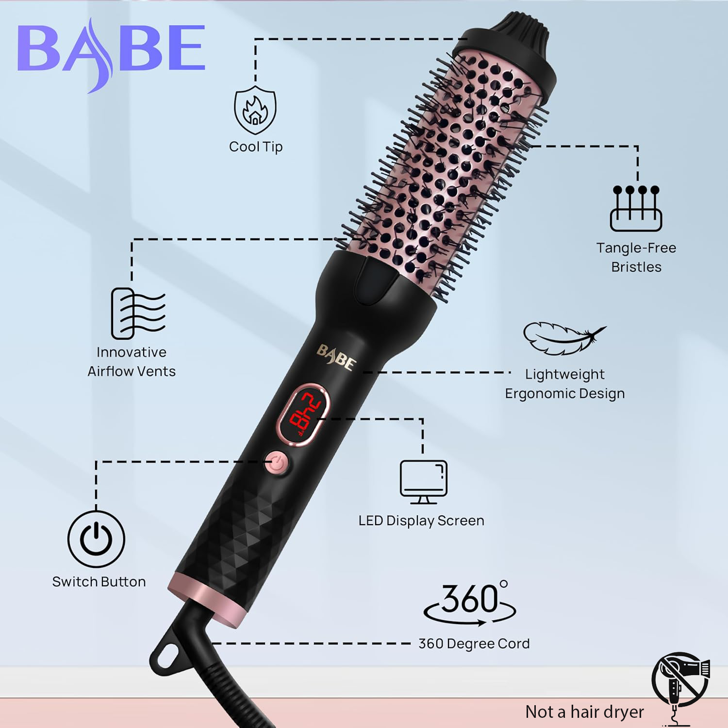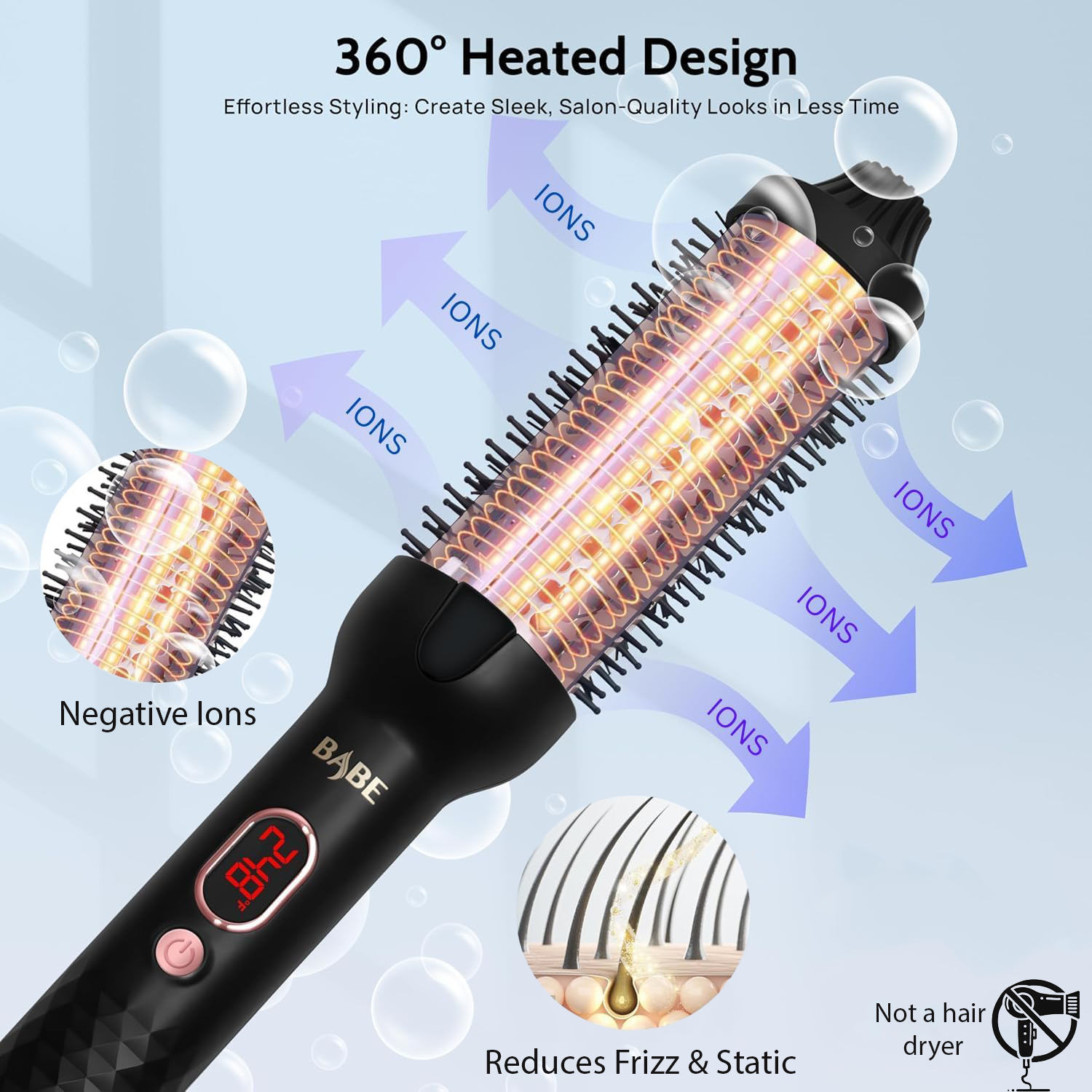 Smooth, salon-quality blowouts at home… fast. The BABE heated round brush with ceramic barrel and ionic technology reduces frizz, boosts shine, and delivers soft, voluminous curls or sleek blowout results in minutes. Adjustable heat (250 °F – 410 °F), dual voltage (100–240 V), and ergonomic design make it ideal for all hair types — plus, it includes clips, heat-resistant mat, and travel pouch for complete styling convenience. (Free Shipping, 30 day return)